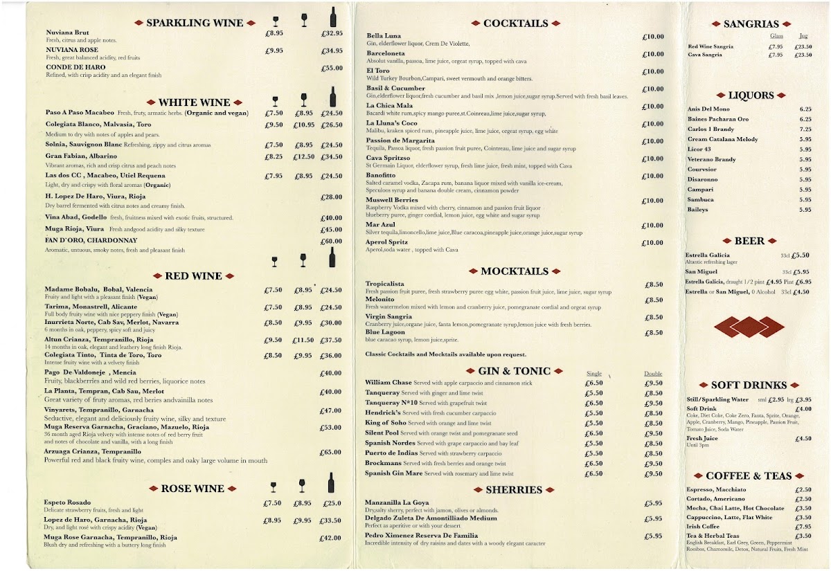Introducing the menu at La Lluna is a delightful experience brimming with authentic flavors and vibrant offerings. Located at 1264 High Rd, London N20, this culinary gem provides an extensive selection of tapas that caters to every palate. Enjoy sumptuous dishes like Paella De Marisco for £16.50 or indulge in Gambas Al Ajillo for just £8.95.